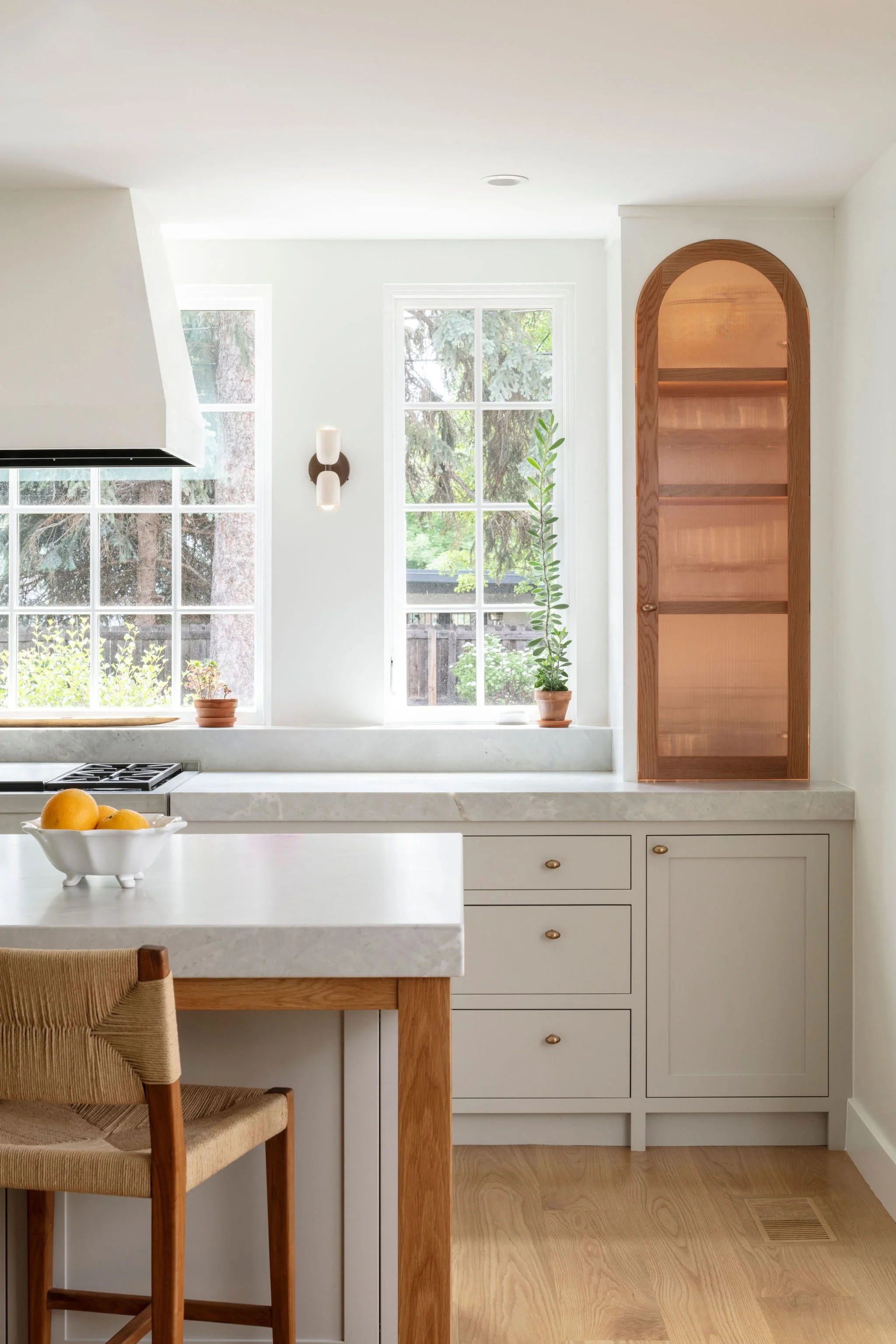 Leaning into a transitional design approach, we blended modern and traditional for a timeless aesthetic. Earthy tones and warm textures create an inviting atmosphere, while hidden storage solutions, including a large hidden pantry and a mudroom address the family's practical needs. Generally light and bright, we introduced moody tones in specific areas like the office and powder room to provide interest and welcome contrast. The Grape Residence, once fragmented, now embodies a warm and sophisticated environment. Every detail reflects the family's unique style, fostering a sense of belonging for everyone.