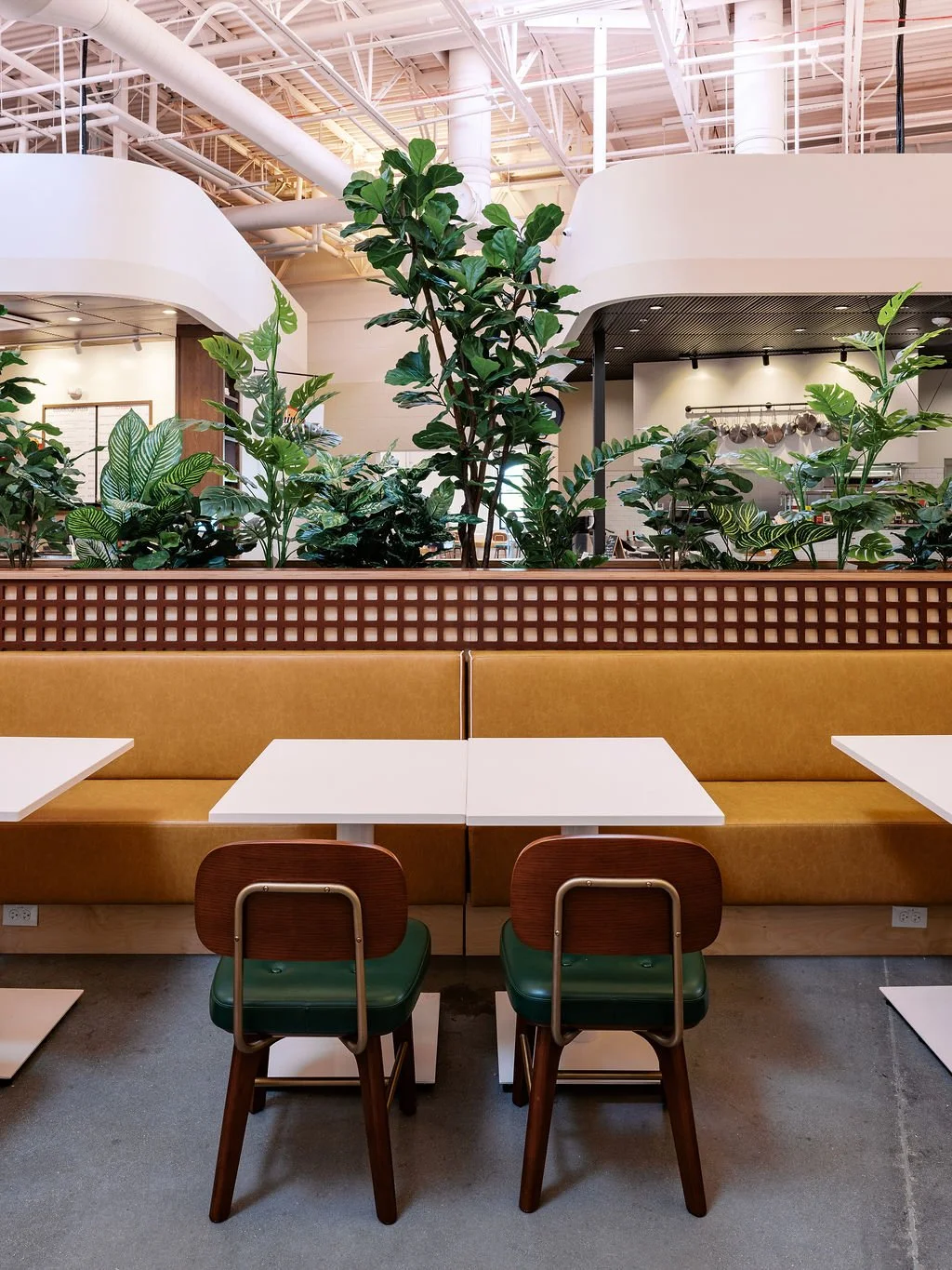 A classic hearth, reframed. Swan Dive Design Studio transformed the stall for Lenin’s Wood Fired Pizzeria into an inviting anchor for the Relish food hall. The counter features warm wood millwork which carries as a datum line that aligns with the front-facing wood-fired oven, turning the cooking line into a focal point at the heart of the hall. A viewing window into the prep kitchen invites guests into the craft of dough and fire, while a bistro-leaning palette softens the former big-box scale of the food hall. The result is a compact, open kitchen that beckons patrons to gather.