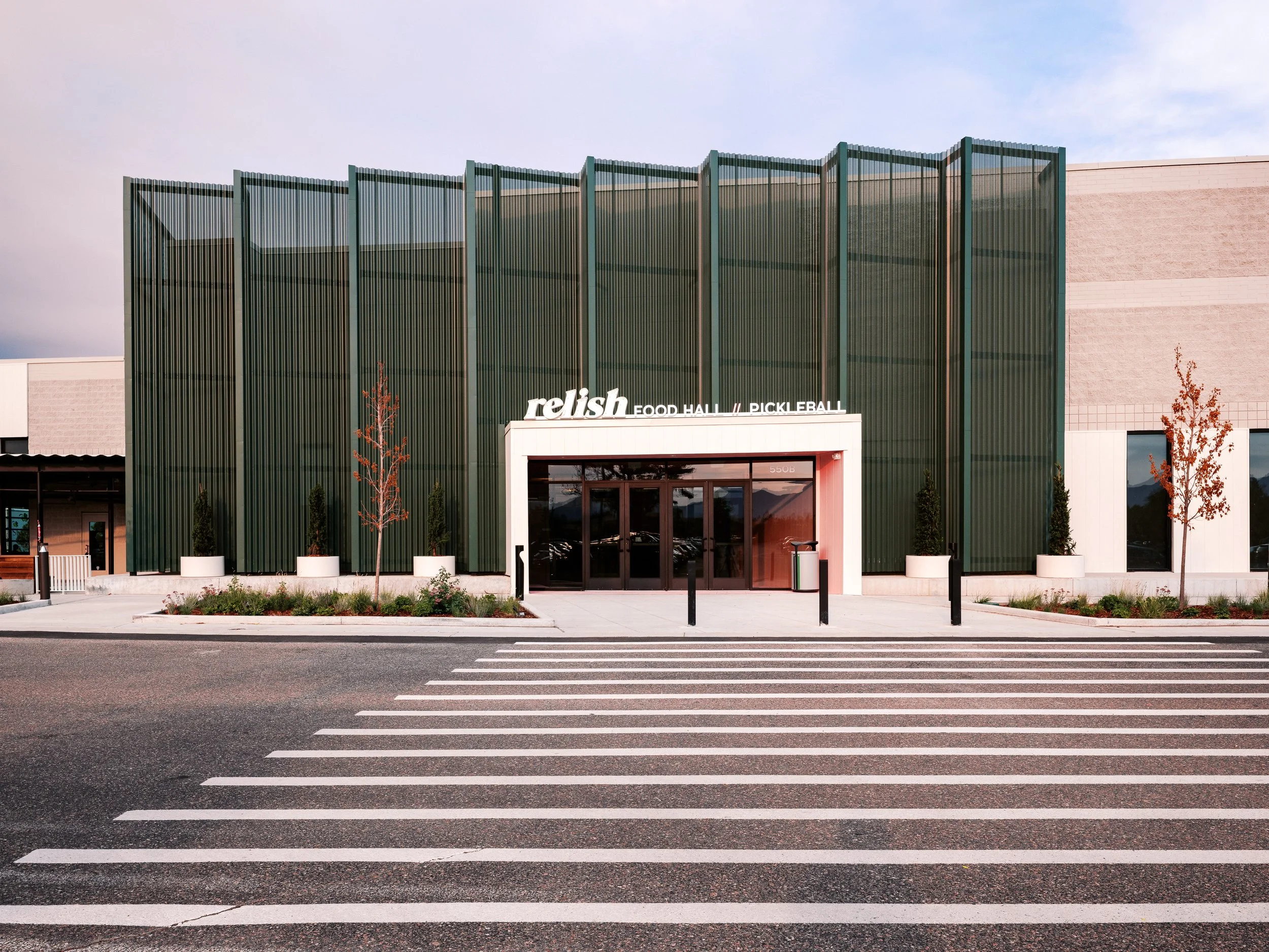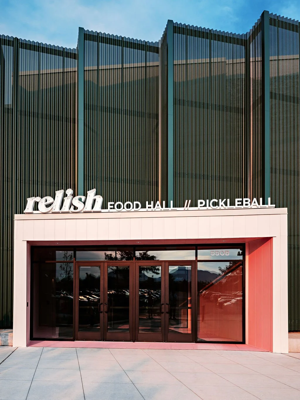 Relish Food Hall & Pickleball reimagines forgotten retail into Colorado’s largest indoor pickleball and food destination, a true community hub built within the bones of a former Sam’s Club. Swan Dive took on the challenge of transforming 88,000 square feet of uninspired big-box volume big-box architecture into a dynamic, layered environment that invites people to gather, play, and enjoy a variety of food and beverage concepts.